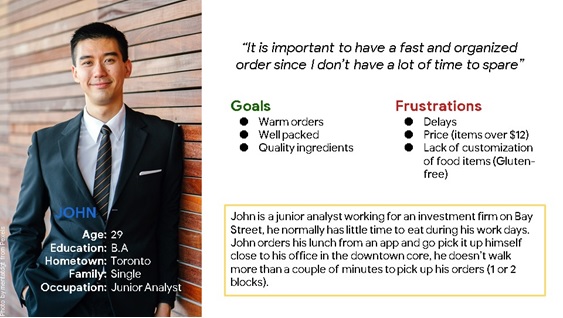 John is a busy junior analyst who needs fast and affordable lunch options because he has only half an hour a day to eat during the week.